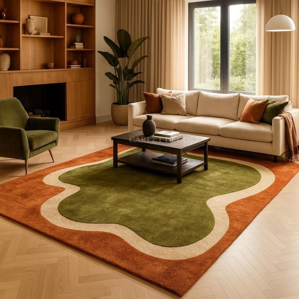 Create a warm, grounded, and sophisticated living space with the Earthline Harmony Wool Rug, expertly crafted from 100% premium wool. This designer carpet features an organic, free-flowing pattern in rich earthy tones of olive green, rust, and soft ivory—bringing a sense of balance and natural elegance to modern interiors.